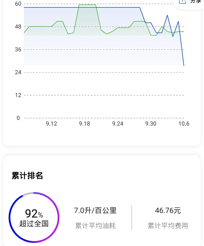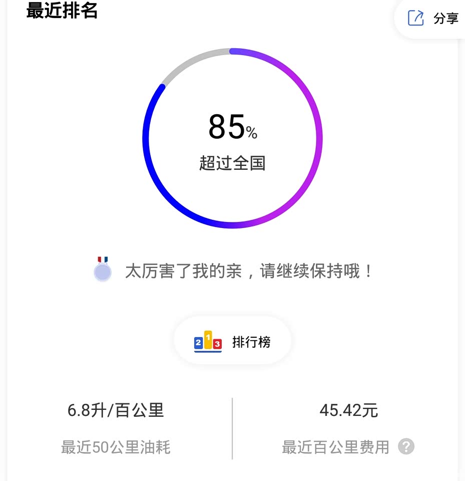 油耗个人感觉比较理想。市区8一9,郊区6一7。