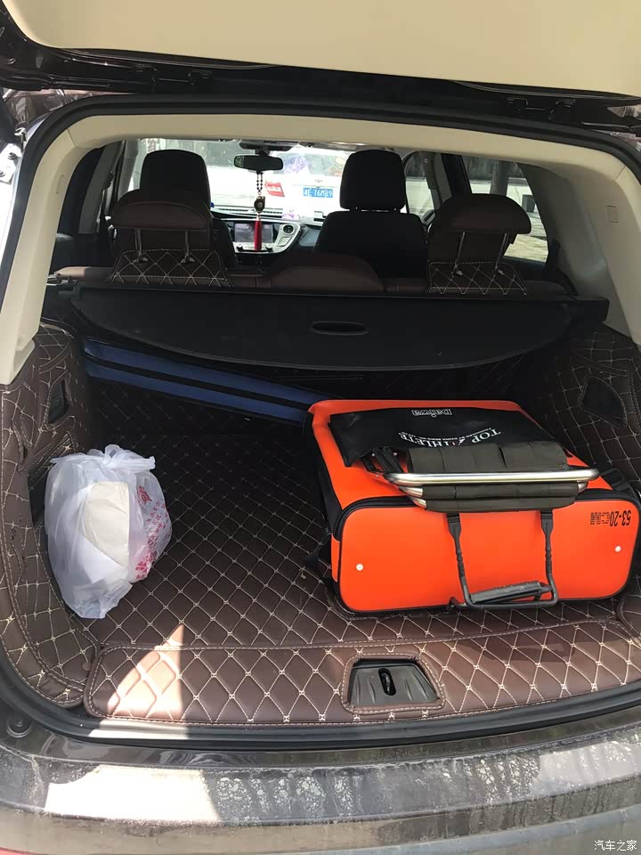 后备箱空间稍显不足,实话讲,钓鱼竿包横摆不下,美中不足。但是再大就得缩短后排了,或者就得上中型SUV