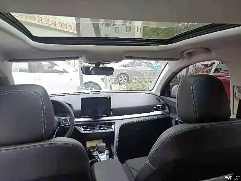 内饰稳重大气,中控台面干净整洁无繁重的杂物设计。车里面的大天窗显得车内还很通透。再加上10.1英寸的大屏幕,显示清晰,语音控制系统,可以开启空调,天窗等等,很智能,点个大大的赞。