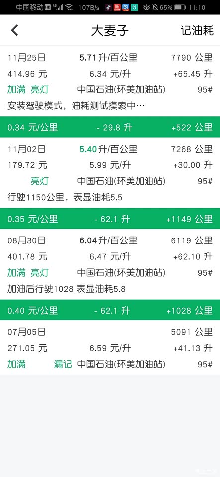 最近几个月开始使用某熊油耗统计,经过4个月共4次加油,我的油耗统计终于可以到排行榜了。目前综合软件测得综合油耗5.71百公里 号外号外: 某熊油耗更新啦!我的油耗成绩全国第一!图片发不上来,你们可以自己去看哈。 全国2.0T总排名第一。 全国同车型排名第一。 北京车友排名第一(不过不晓得为啥我的统计不显示地区,正在和客服沟通…) 关于是否需要在乎油耗,完全见仁见智。 你有权拥有绿灯亮起,一骑绝尘的爽快,同样我也有通过精准控制油门开合、完美预判路况、保证符合正常通勤的前提下,根据实际情况调整最佳性价比档位速度后获得超低油耗的满足感。 而且实话实说的讲,我原来经常开公司的克莱斯勒300c出差全国跑业务,只要没有限速头我从来都是顶着那车电子限速180公里跑的…开快车谁不会啊,踩呗😂但是想开车省油可就不容易了,有人可能会说,有啥难的肉虫子似的来呗…其实真不是!大麦子这车1-3档30公里以内非常非常费油,加速瞬间油耗不会低过两位数,所以尽快提到比较高的速度才行。想做到偶尔省油也简单,去跑高速挂巡航95-110就会很省油,但如果想综合油耗很低,那了就是技术活了😃前面五百米明明已经红灯了,你还一脚油门过去,到红绿灯一脚踩住…你不费油谁费油,而且还特别费刹车呢…另外环路轻度拥堵跟车,只看你前面第一个车,其实前面第三第四个车都开始刹车了,你还跟着提速,然后马上踩刹车…汽油就是这么白白浪费掉的!而且还容易追尾。我开车快二十年了,以前福瑞迪的刹车就特别省,除了必要的时候,我都不会踩… 有兴趣看看怎么节油的车友,可以看看我以前发的帖子。 另外38号很早以前发布的视频《为什么我开车比你省油》,大家也可以好好看看,说的真的很客观。 或者在后面留言,我可以把我总结的经验和我发现的大麦子最佳工况和换挡时机和大家分享。