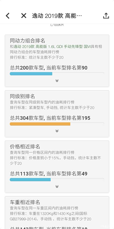 油耗真的高,而且小熊油耗的数据你们可以看看,逸动可以算是紧凑车里的油老虎了 我纯市区车速15,10个油。315块钱跑490公里,感受一下,这是辆a级车 那些反驳我的,请看看你们的时速,在国道省道跑的人我当然知道你们油耗低 别说废话,请具体情况具体分析
