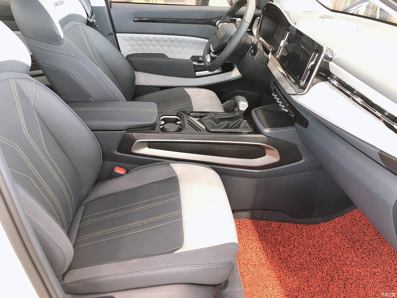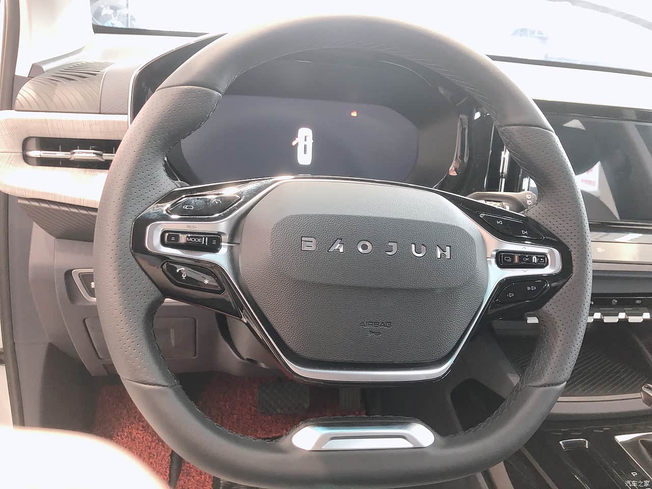 座椅是仿皮的,坐着感觉还行吧,靠背还有宝骏的拼音,跟之前几款车都不一样。前排位置很大,提车回去的路上开着感觉有点难受,可能是腿有点短,去加油站加油的时候趁机调节了一下,跟副驾驶一对比就知道原先的距离是有多大了吧!妈妈和奶奶一般坐车头晕得厉害,但是这次出去都没怎么说头晕的,没什么颠簸感,关上门窗,隔音效果很好。