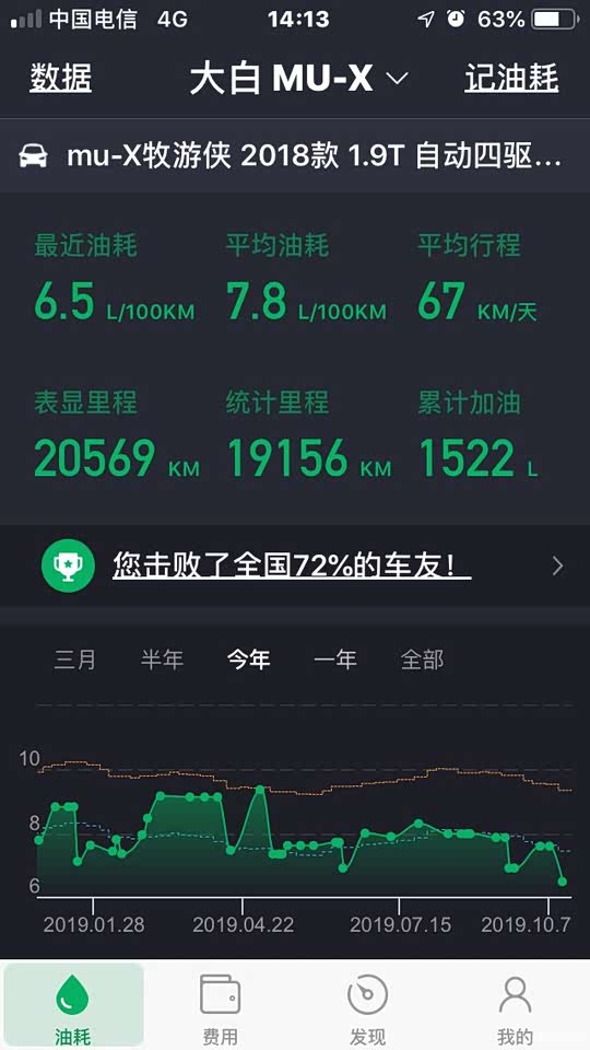 目前开了2.1W公里,主要市区代步、也有高速奔袭,也有几次自驾游,总的情况如小熊油耗所示。