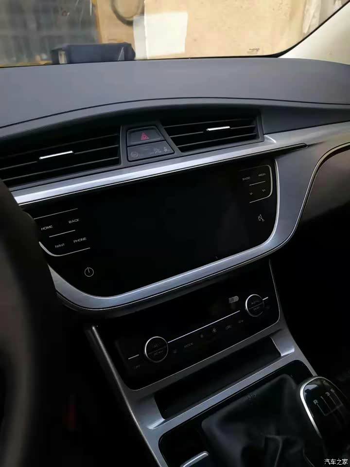 中控台是黑色和银色的,座椅是全黑的,该有的都有。我也很喜欢这个显示屏,旁边有触屏按钮,可以收听广播。