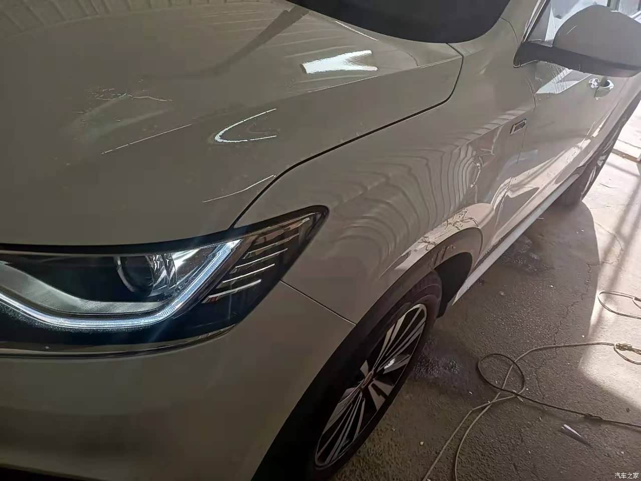 外观我还是很喜欢的,虎头虎脑的很大气外观,漆面很亮,钣金摸着也是挺厚实的,双色的轮毂也是很漂亮,就是大灯还是卤素的,这个真的是很落后啊!