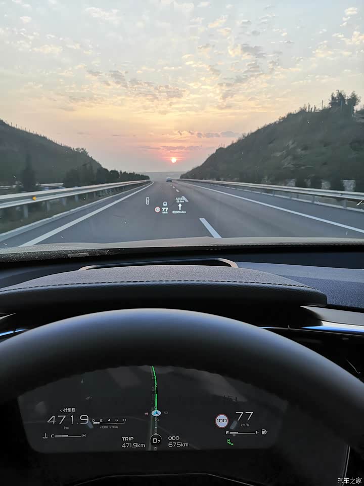 提车第三天就赶上了国庆黄金周,因为老家比较远(500公里),就想着开车回家浪一圈。作为开车新手的我,耐不住回家的冲动,凌晨一点开车出发,开了六个小时,早上7点到的家。不得不说操作真是简单直接,抬头显示车速,旁边有车也可以看到,想超车时候才需要左右看看,然后打灯,操作也想到迅捷,只要给油就有慢慢的推背感。对于我一个新手,开这么久都没觉得累,真的是太有爱了。