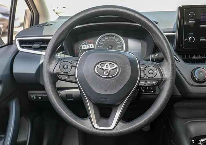 还是简约风,收音机变得时尚大气了,连最低配都配备了多功能方向盘,电子手刹,还有自动驻车。不过精致度有待加强, 希望丰田在内饰上多下点功夫。