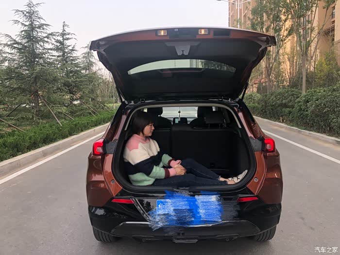 我特别喜欢昂科拉的后备箱,你们看,本人坐在后备箱里丝毫没有违和感,哈哈,并且后背箱里的隔板是可以上下移动的,方便我出去玩的时候放倒第二排座椅在车上休息。当然啦,昂科拉第二排的空间坐着我妈那种大胖子,(幸亏她不会看网页)也是木有问题滴,特别宽敞,没有拥挤的感觉。