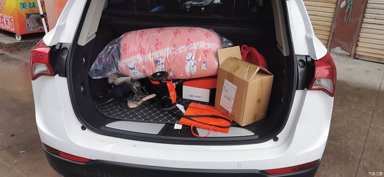 空间毋庸置疑,一个字,“大”,我跟我老公就是因为空间大所以才买的这个车,因为老公经常出差在外,平时我就是上下班开开,现在后排基本不怎么坐人,最多放放衣服什么的,所以被我加了一张气垫床给我儿子睡觉,我儿子可喜欢睡在上面了,貌似有点像房车的感觉!后备箱的空间也挺大,平常放放我自己的东西都是绰绰有余!只是我平时比较懒散,不太会整理,所以看起来有点乱!请不要见谅!