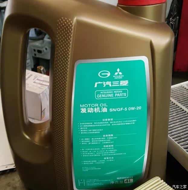 三菱原厂的020机油,一桶4L。基本能用完。奕歌不同于自然吸气的车,有的车是5W30,5W40。