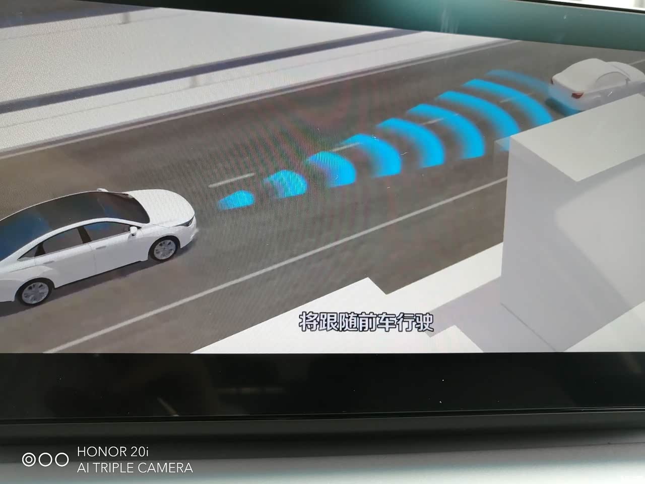 领航系统开启!会自动打方向盘跟车行驶