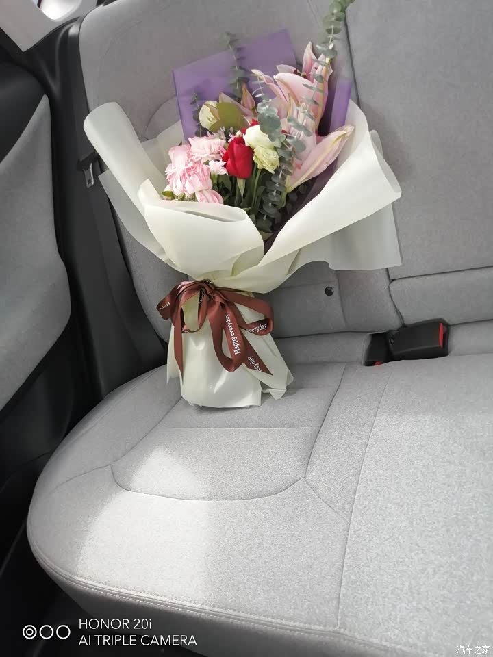 后排小花花!放了几天了有点枯了!😣车里面一股淡淡的花香!