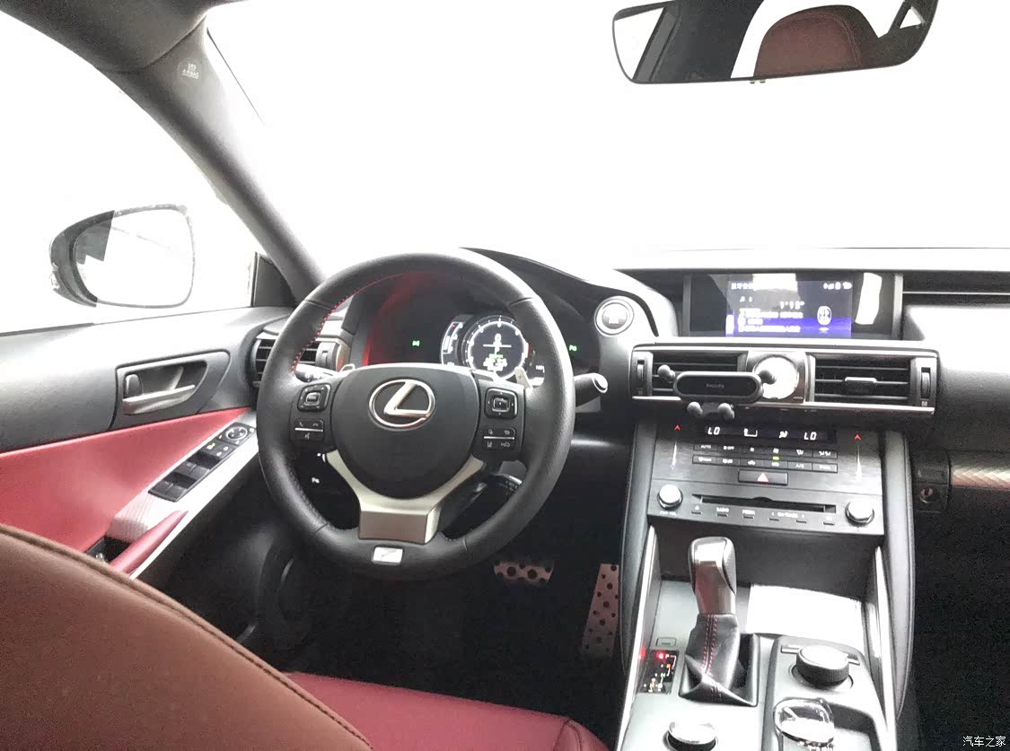 这次换车主要考虑了几点:1:后驱车.2:小众车.从这两点出发,最先考虑到是阿尔法罗密欧的Giulia-280豪运.无奈之前优惠太大没赶上,然后现在没有什么优惠了,而且就连自己的销售都说这个价格厂家简直就是不想卖车...好吧.无奈放弃了.然后考虑了一下Q50s.貌似都没有车了...最后看了看四门428.超预算太多了…这时候突然想起来IS300F-sport来了.早期同事有一辆IS250F-sport V6.开过一次,感觉还不错.去了4S店,销售很热情.只剩下了一台展车了.得.交定金走人.4年10万公里免费保养确实让人觉得很省心.不过五方天雅那边的店给出的是6年10万公里的优惠,无奈LD不喜欢钛银.只能放弃了.F-sport的精髓就在于这块可移动的电子仪表上.造型帅气,毫无抵抗.分层感的中控台造型也融入了跑车的设计感.金属拉斯质感的音响面板添加了一丝复古的感觉.没有选成全黑内饰有一点小小的遗憾.总体开说这辆车真的是很不错了.