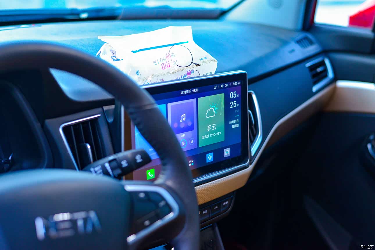 皮质座椅很舒适,硬塑的感觉不是很强烈,和汽油车还是有区别的