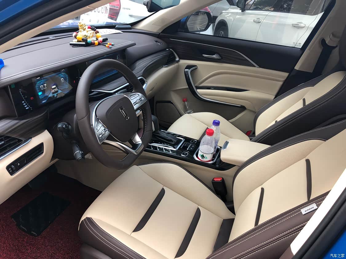 内饰方面整体还是比较满意的,就是唯一一点蓝色的车是米色内饰有点不耐脏,其他方面都比较满意的,比如说用料做工还都是比较精细的,车子新车里面也没有什么味道。
