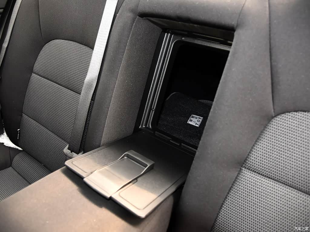 后排中间的靠背可以放倒做杯架,放倒后会有个盖子可以和后备箱联通