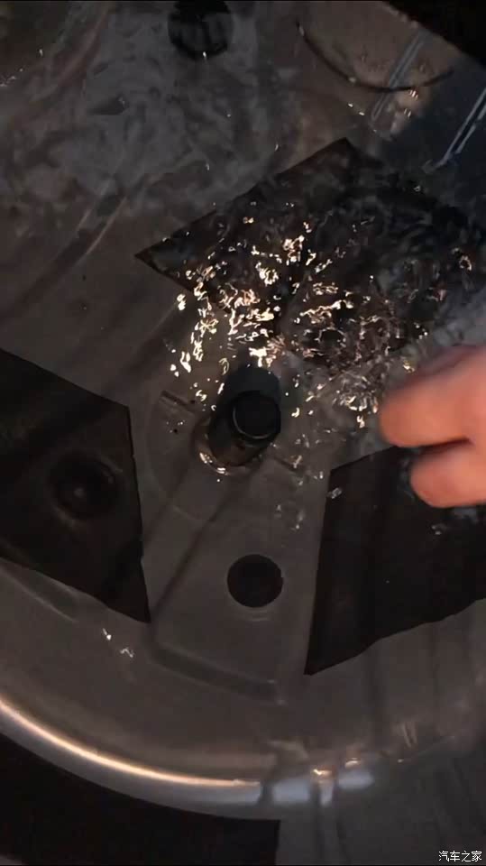 发现后备胎大量有水,后经过反复高压水枪测试,发现漏水严重