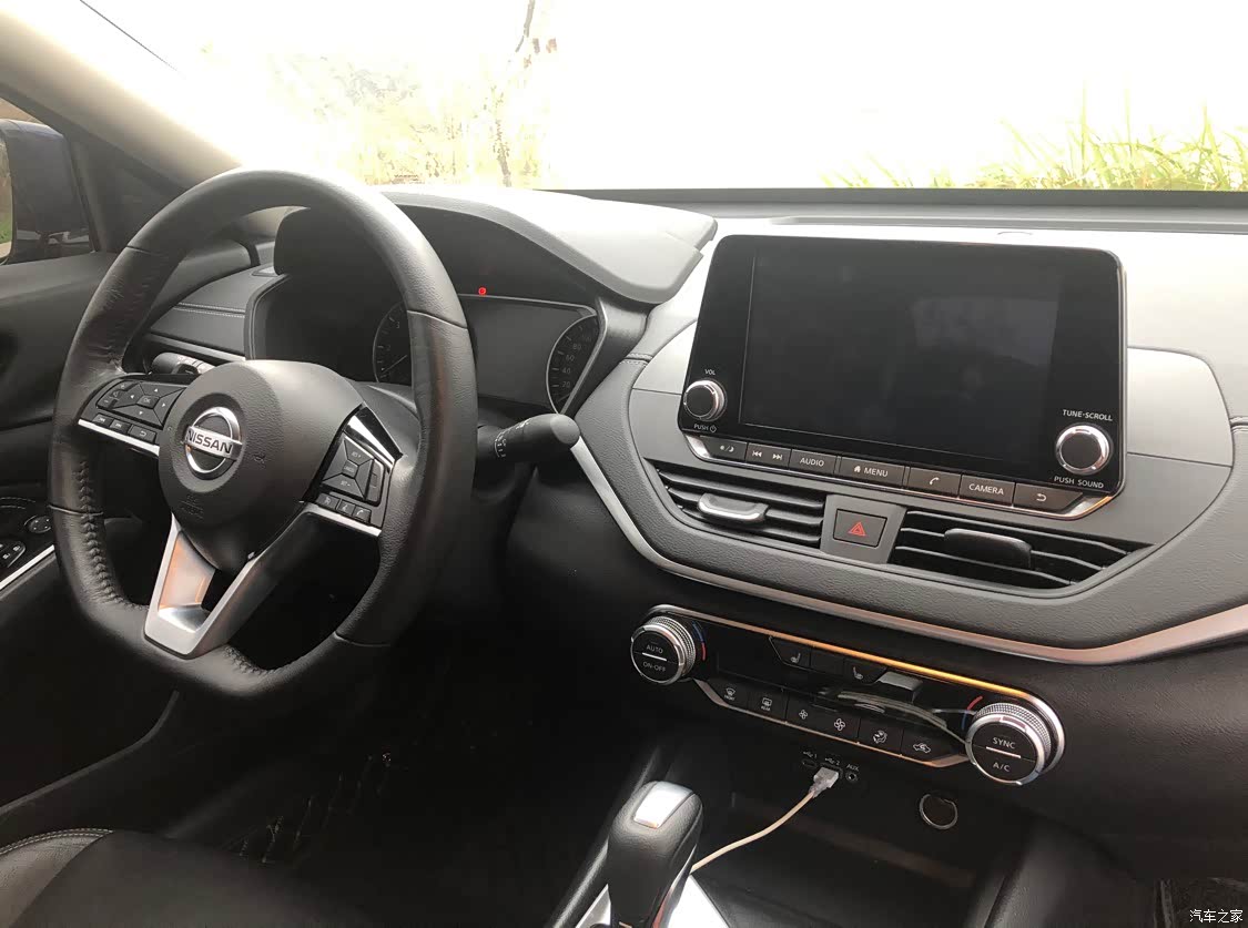 日产车的前脸基本都是一个款式,大V脸,这个也是一个品牌极具识别度的标志。两侧的大灯感觉很尖锐搭配下方梯形的进气口和两侧雾灯下方的铲型前唇造型,回力标式的日间行车灯同样 也是日产的特点吧。车身查阅了一下有4901mm的长度,在尾部修饰以及腰线的衬托下,显得非常修长迷人。而且是双出排气,虽然平时看不出来,但是确实存在。 全新天籁在内饰方面我感觉比较立体,皮质包裹加搪塑材质营造出舒适和豪华感。方向盘握感厚实,仪表盘设计简洁。多媒体控制功能比较丰富和实用。支持4G网络,智能网联APP等。