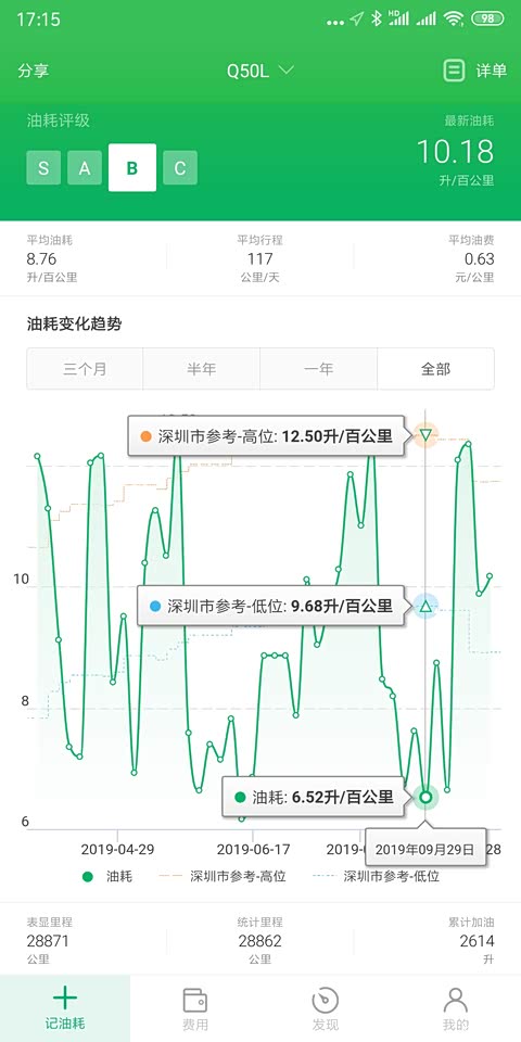 高速油耗最低有过一整箱油全程在高速上油耗6.1,还挺满意的