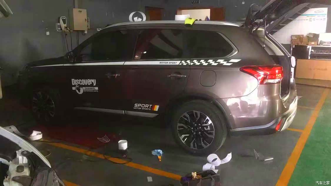 提车第一件事就是开到售后装修部进行小范围的贴画,因为我是一个有信仰的人,从小就受成龙电影的影响,还记得我是谁电影里的桥段,成龙开着三菱越野车驰骋在野外,车身上都有不同的拉花,直到现在这种感觉让我心中澎湃,所以必须小改才能表达我对欧蓝德的热爱!