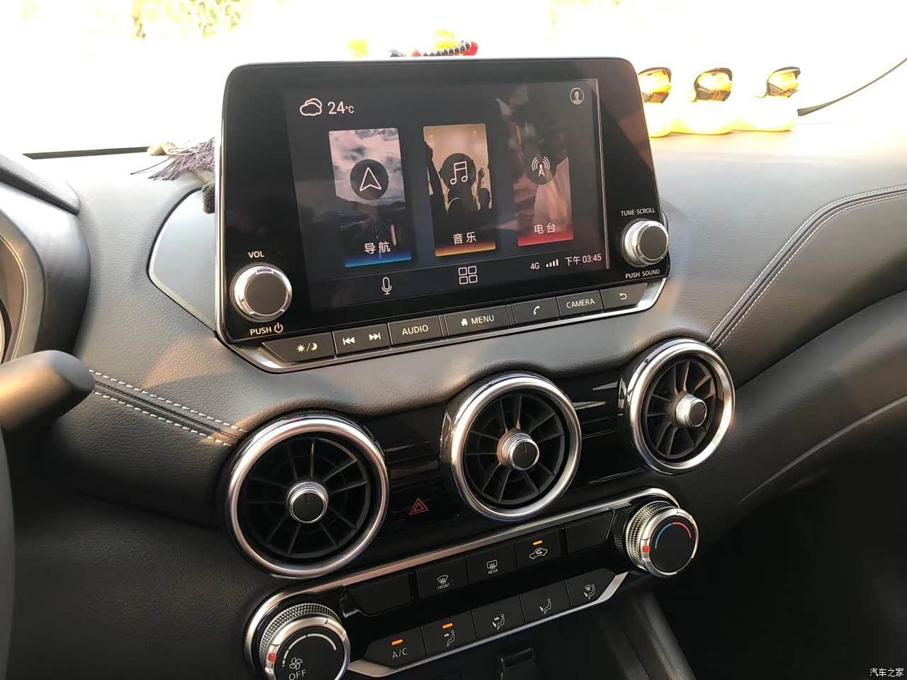 14代轩逸比上一代有了很多的变化,让人满意的点有很多。翻了翻论坛和其他车友发的文章,感觉满意的大部分都是外观、油耗之类的,但是我对14代轩逸最满意的一点却是内饰。买车之前这个车的外观一斤看了很多图片了,但是到了4S店实际看车时,内饰真的让人眼前一亮,内饰颜色虽然是深色,但坐进去后给人感觉并不压抑,内饰用料上也很不错,基本都是软的。前排空调出风口用的是三炮筒的设计,这个跟奔驰一样,单看整个内饰根本不觉得是一台十几万的家用车,档次感十足,确实是有跨级的感觉。