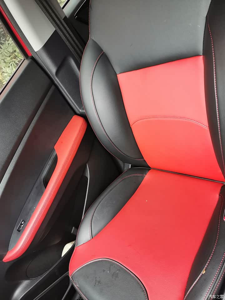 外观没的说真心好看,当时就是被这别致的造型所吸引,之所以选个红色,一是因为老婆喜欢红色,她要开有时候,还有就是内饰是黑色和红色的搭配使得更加搭配一些。一年半还是看起像新车一样,很亮。家里人都挺喜欢。小“三”每天给我的感觉都是十分的娇艳。哈哈哈…