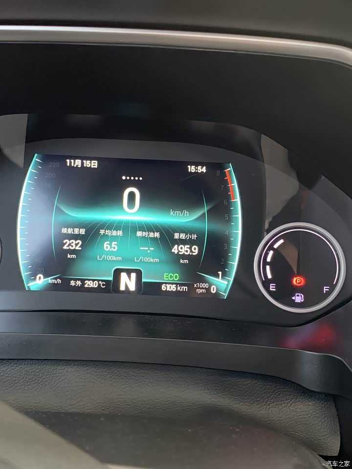广东粤西地区,基本上都是一上车就开空调。跑的路省道占了百分之六十,市区百分之五,限速一百的高速公路百分之三十五。我开车性子急,省道上都是我超别人,很少有人能超过我。买之前就想着能跑出7.5到8个油就满意了,毕竟朋友的2.0的三菱欧蓝德也要7.8个油了。现在能跑出这样的油耗真的给了我很大的惊喜,忘了说了表显油耗跟实测差别在0.1左右。