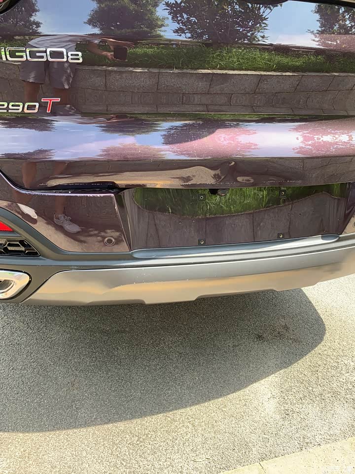 上牌的那天就完成了一血,当时4s店上牌的工作人员让我退到车位里去拍车身照。车位后面是花坛,当时我就看着车子的中控屏的倒车后视,倒车后视显示起码还差一米多的距离但是不知道为什么就撞到后面的花坛了。现在想起来应该是360摄像头有延迟,也给车友们提个醒,别太依赖360。