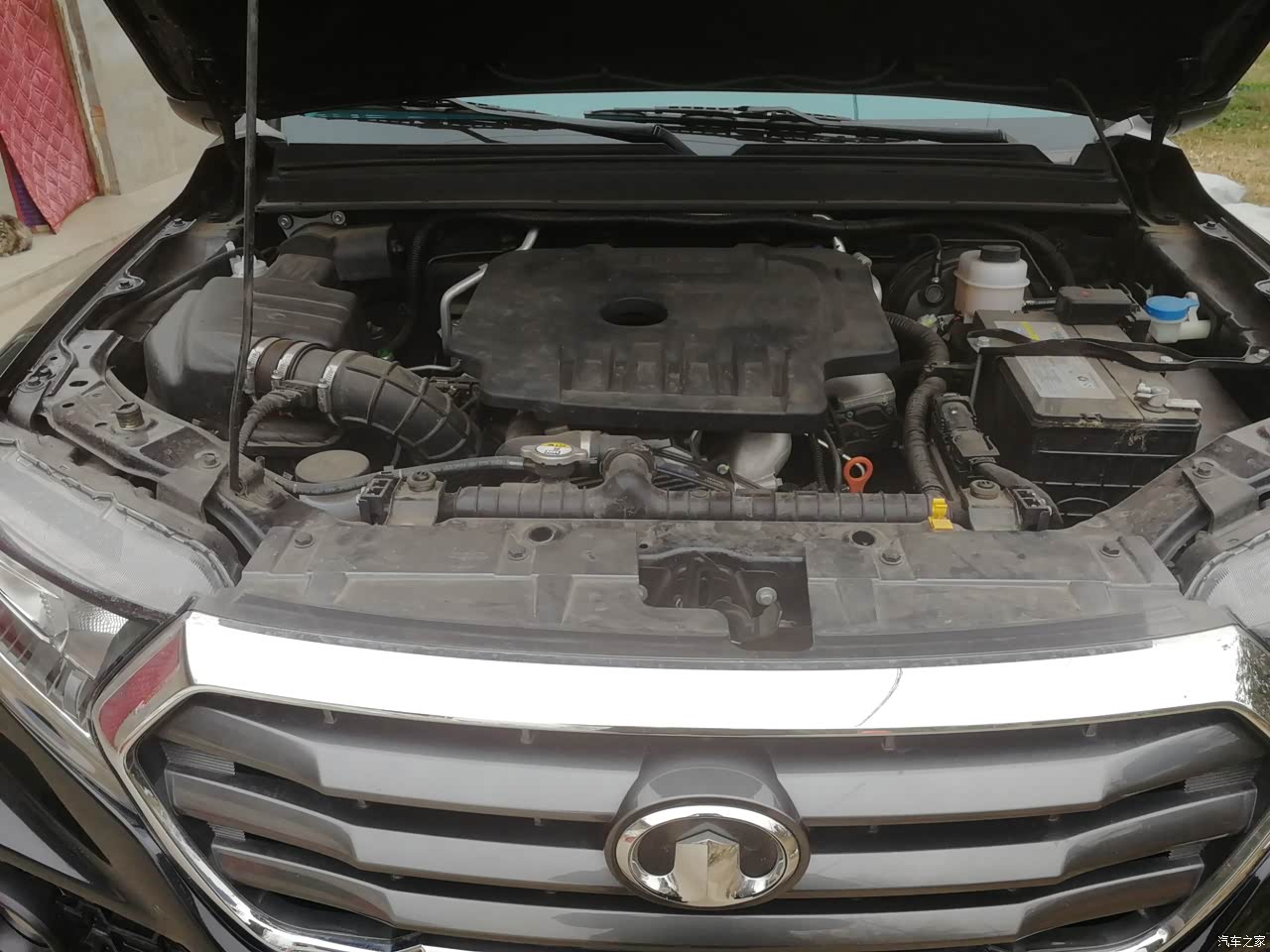 坐在前排与越野车没什么区别,配置丰富,四轮碟刹 车身稳定 半坡辅助 定速巡航 语音控制 主驾驶电动座椅 座椅加热 ,国产皮卡中配置算丰富的,4D20D发动机,最大功率105 最大扭矩315,转速只要不掉2000那是相当可以!3000斤,2600转,动力那是相当到位!