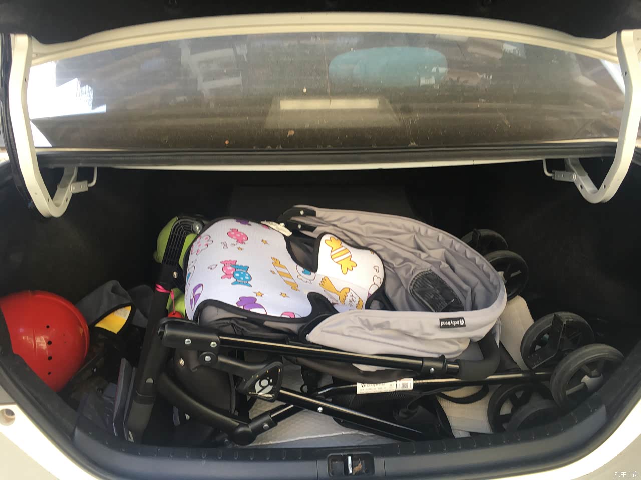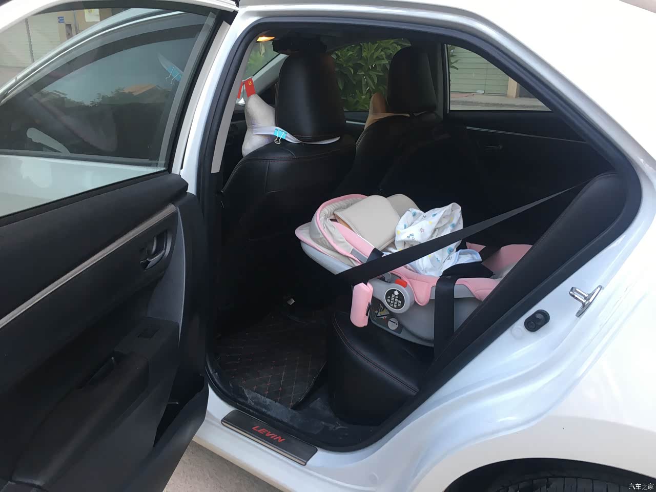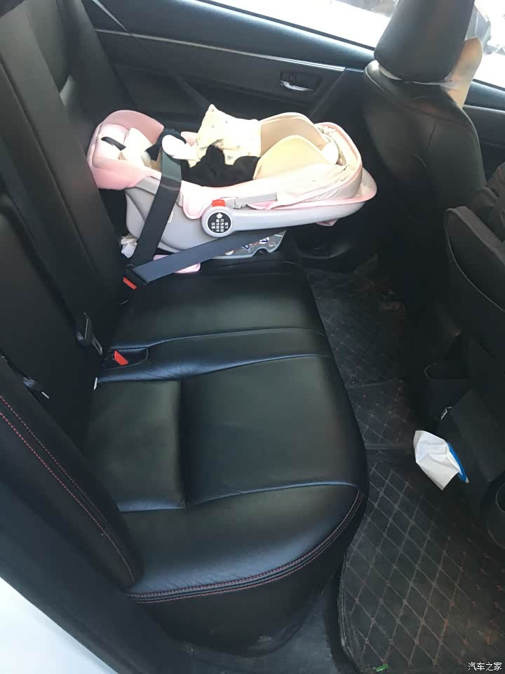 后排是平的,大大的加大了空间。放个车载安全摇篮后,我在驾驶位上也一点问题都没,以后改放个安全座椅相信也没有问题的