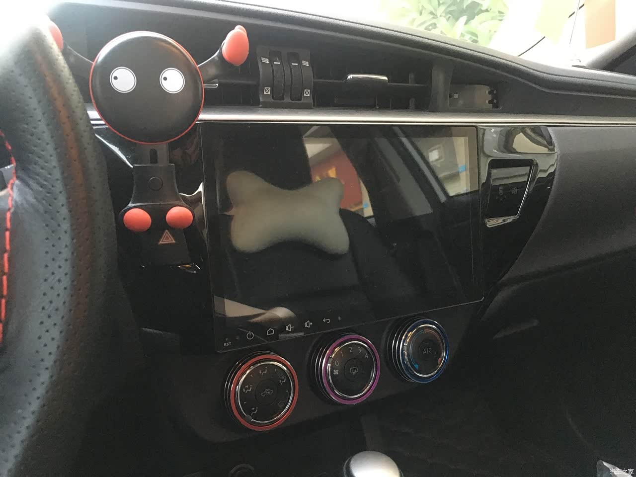丰田车,配置那是相当的低了,我买的精英版车门处扶手处还有点真皮,要是新锐版好像都没有。软塑料的材质还可以,往后的改款那些配置就上来了,16款是真的相当乞丐呀!仪表盘设计,相当中庸!中控多媒体是4S装配的大屏幕,**略高,较为时尚!质量还行,尤其是倒车后视景象足够清晰。音响音质发现还不错哦!这里要吐槽一下,路畅科技的飞歌导航着车自启动这个沙雕设置了。异响异味:无。