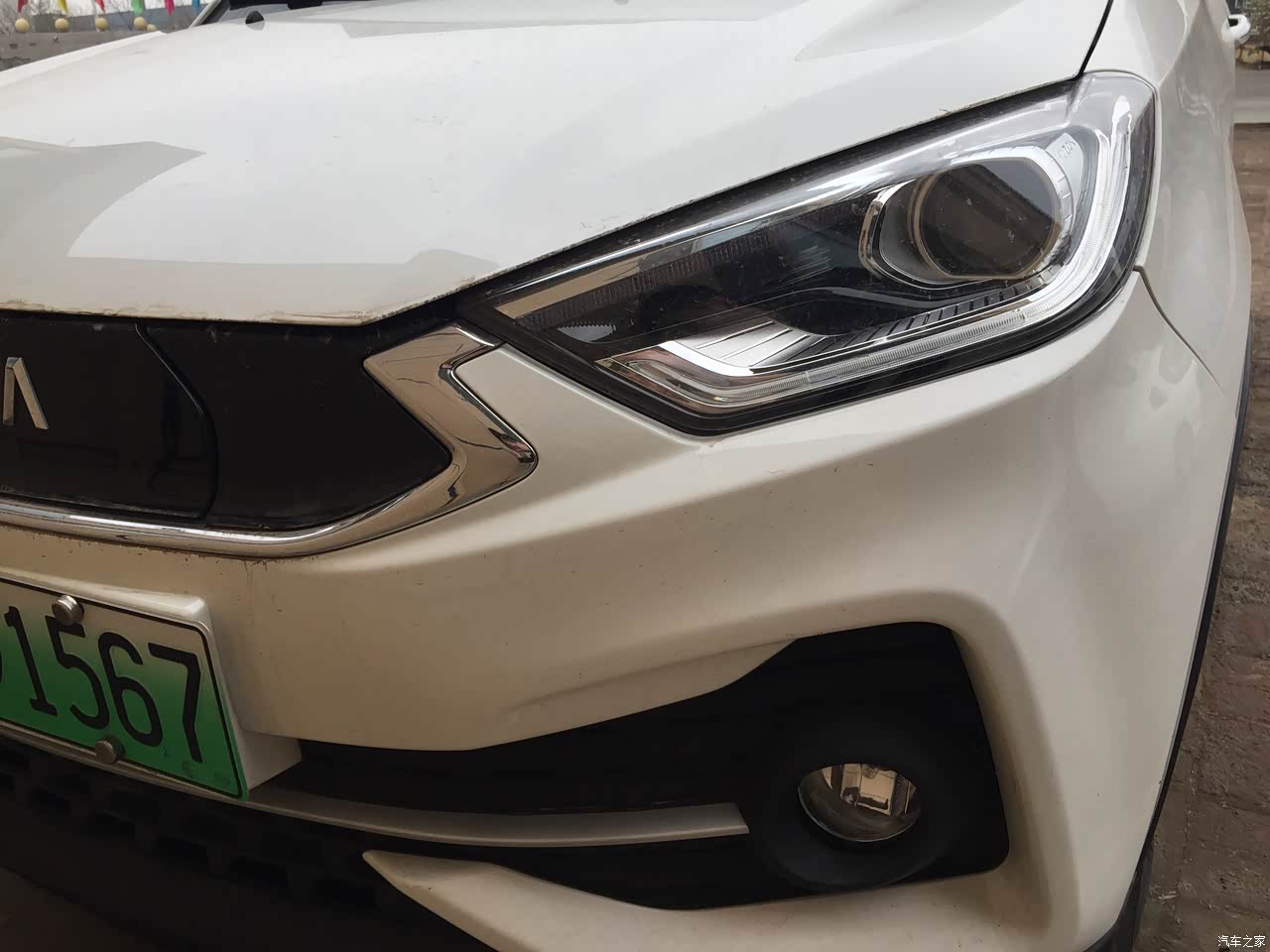 车整体看起来很厚实,大气十足,车身颜色为青云白,从侧面看菱角分明,很凌厉,尤其是前面的大灯很亮,灯光为白卤素