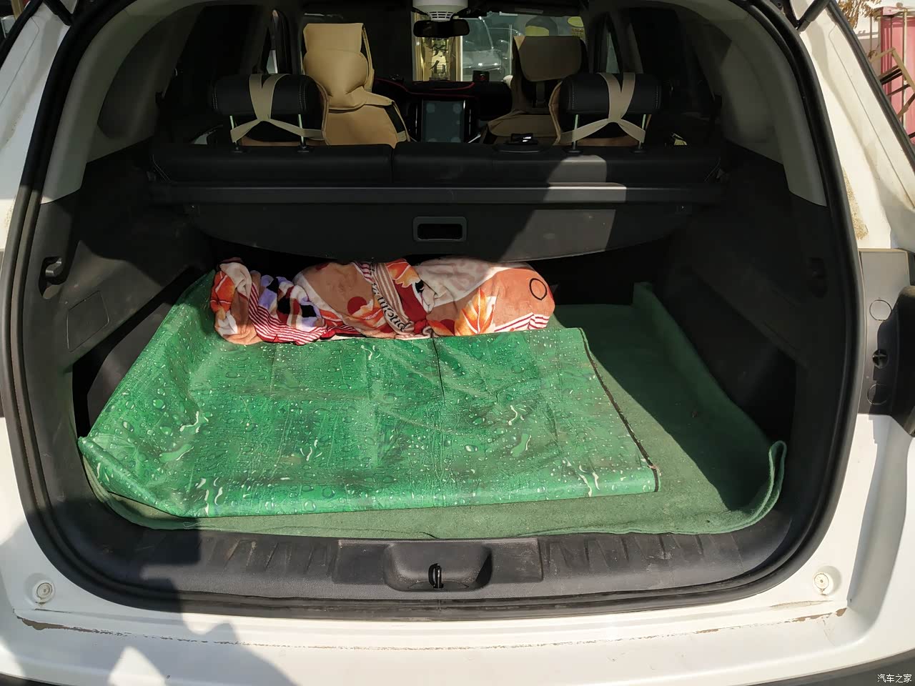 后排座椅可以放平,放平之后和后备箱都是通体平的,有个1.8米左右的空间,这出去玩,累了可以躺下休息,很方便!