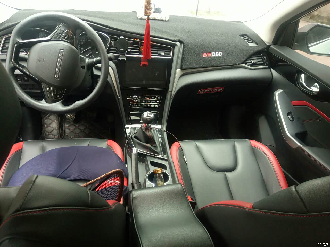 内饰黑色为主色,显得比较稳重吧,是我比较喜欢的颜色,屏幕的感觉就像几年前的电容屏手机的感觉,但是它!!大!!啊,里面基本上都是那种软皮材质,摸起来也比较舒服,新车也没有太大的异味,我觉得OK的