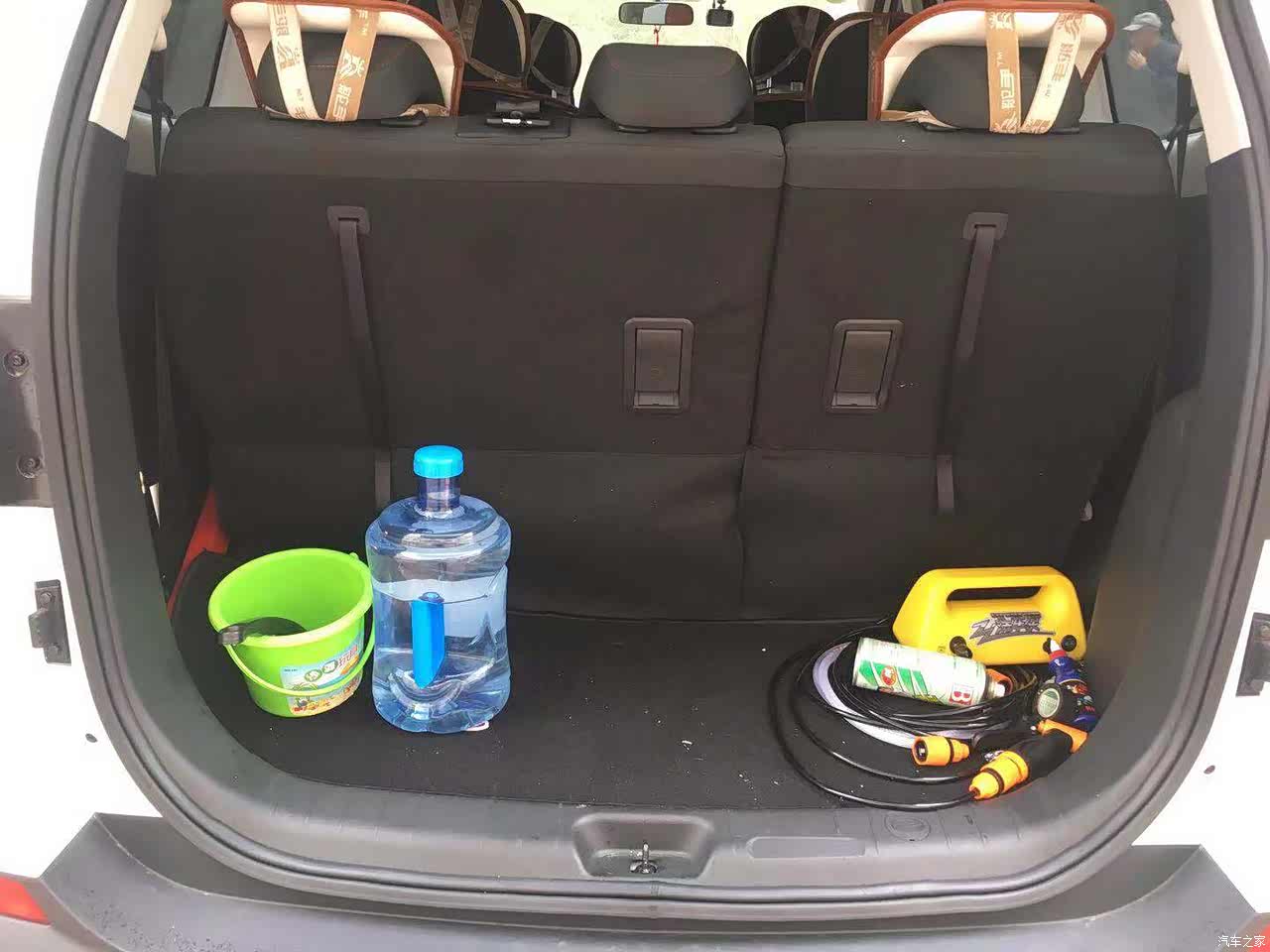 现在是没有把后面的一排座椅放到的时候,装的东西不是很多,放倒之后的照片着急有事就没拍,放到之后装东西的话,两个大行李箱没问题还可以放点别的东西,空间是非常大的,平时我也会拉点活什么的,座椅放到之后都是没问题的