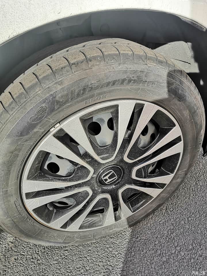 轮胎是原厂的,搜了一下是日本横滨轮胎。不知道好不好,反正已经拐弯被媳妇挤路牙子两三次了。