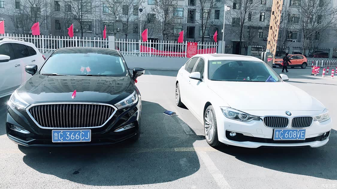 红旗和宝马在一起一点都不输气场