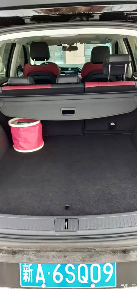 空间大,我选的5座的,后面的人可以翘二郎腿,后备箱也非常大。4个自己的轮胎轻轻松松装下。