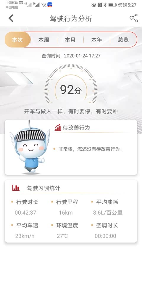 去年开车习惯不好,经常低速行驶。在一直没有清零的情况下,长期平均油耗从12点多下降到11点多。如果单看今年的油耗,应该是11.2左右(根据红旗app的计算)