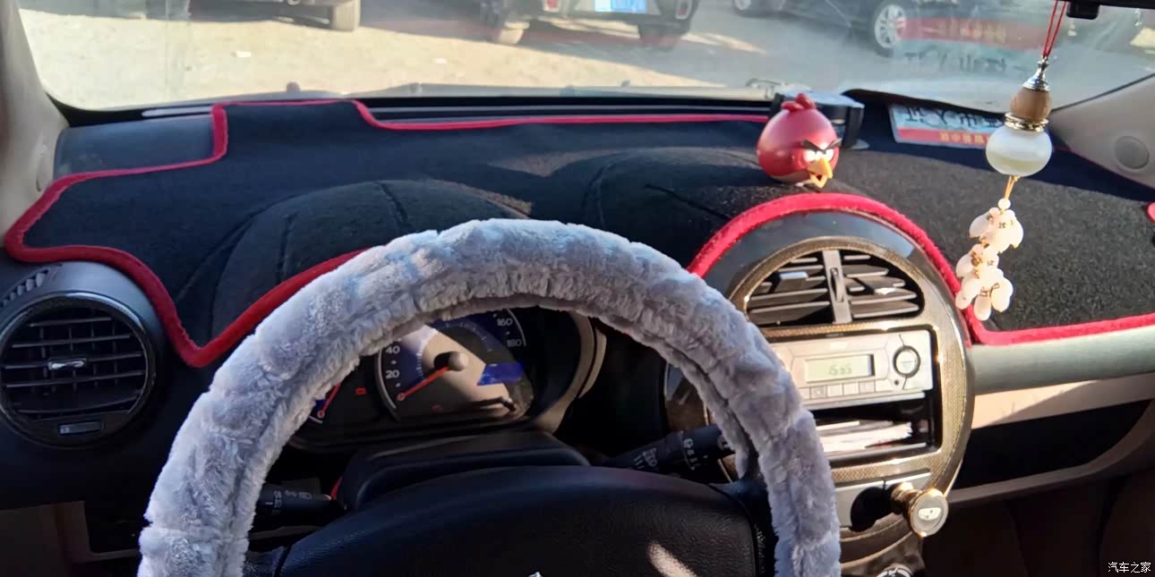 内饰也是很可爱的,圆形中控,跟外观很协调。虽然硬塑料比较多,但很满意,做工也不错!捎加装饰,就很漂亮!