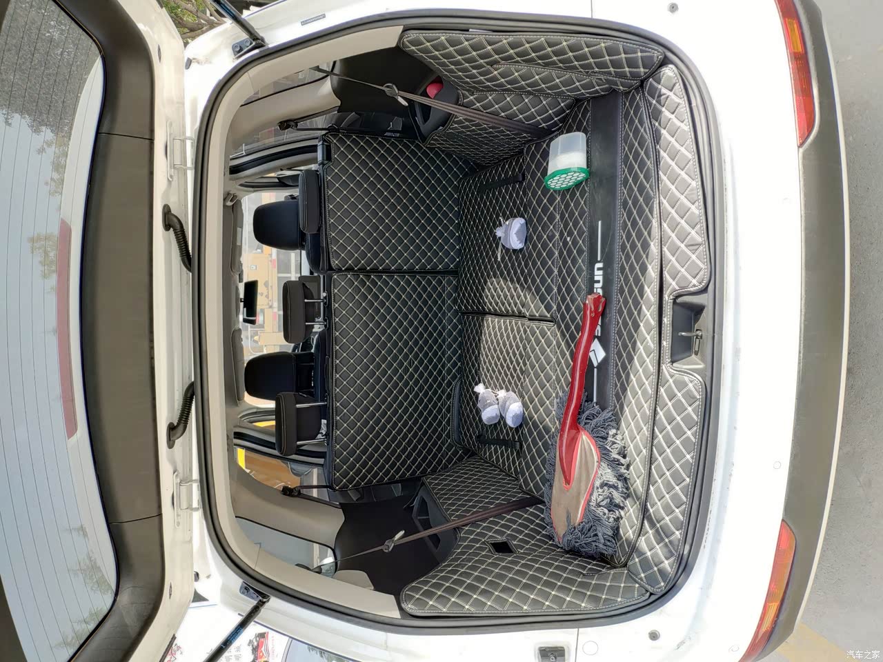 后备箱空间也凑合用,不能和轿车比,但是同级别的几乎也没有对手,最主要的是第三排远离了后窗玻璃。