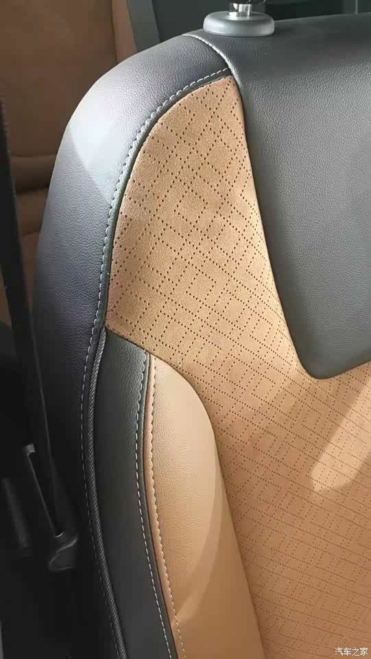 真皮绒面内饰,颜色搭配得也好,看起来高档又大方。