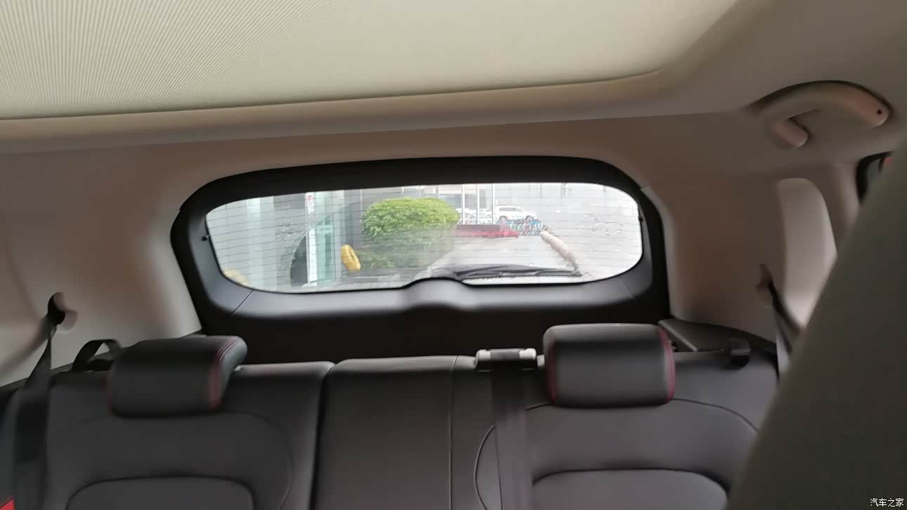 座椅颜色我也很喜欢,黑红色的,全景天窗,以后天气好一点的时候,可以出去耍的时候开天窗,如果想休息,后排可以放平的哈,把座椅掀起来折叠一下靠背拉一下就可以放平了后面还有充电接口,可以一边充电一边耍手机