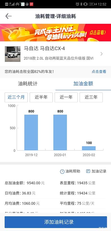 汽车之家油耗记录,实际用总燃油消耗量除以行驶里程算下来比软件计算的多,有一些误差,平均
