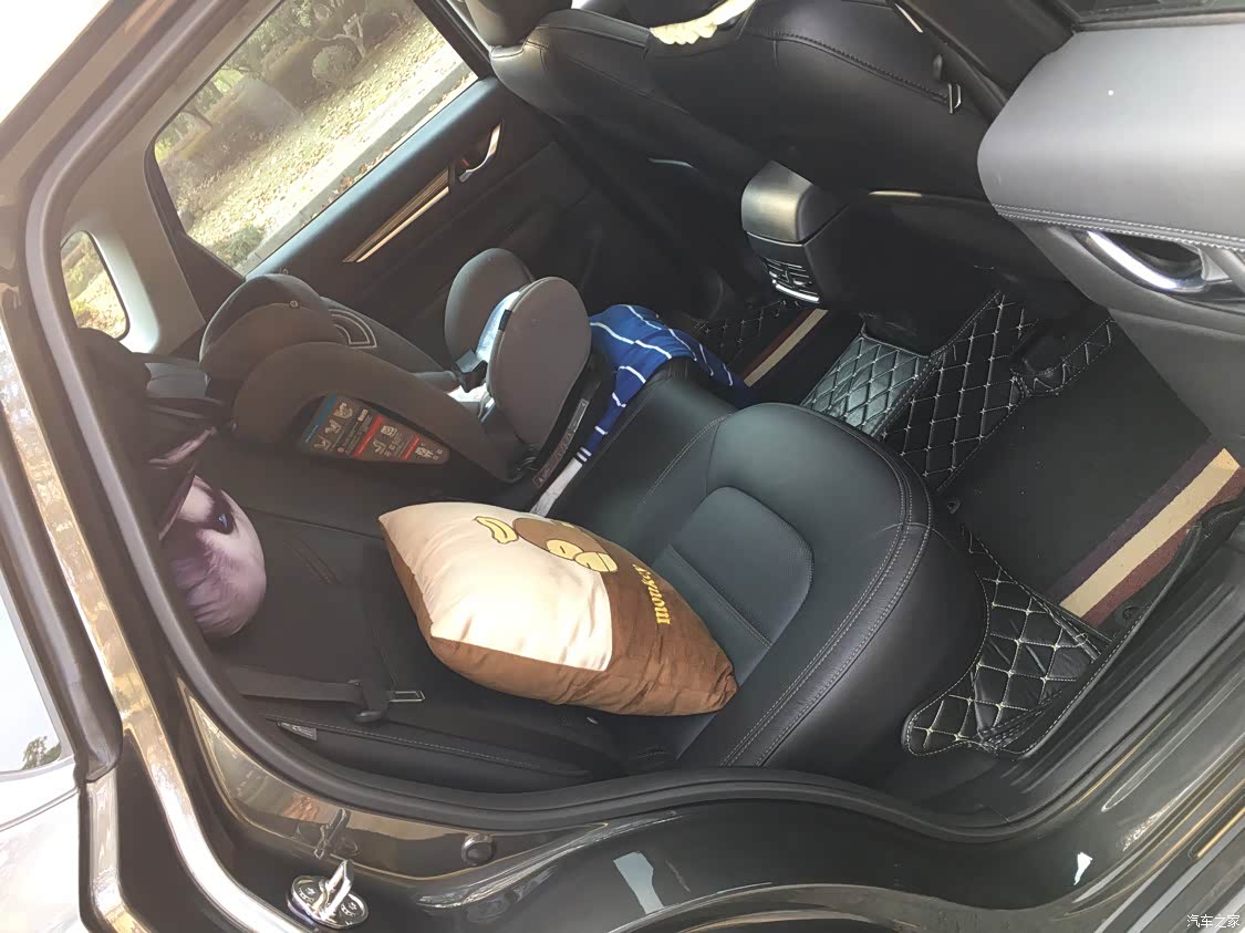 内部空间整体感觉还不错,CX-5的空间在一般家庭使用或出游使用都已足够。SUV的视野感确实好,再也不会因为前边有辆SUV而感觉困惑,小轿车总是被SUV挡的严严实实的,无法辨别前边的路况。最影响空间的应该就是后排中间有凸起的梁,后排超过俩个人座会感觉有点不舒服。座椅座的感觉挺舒服的,也许是因为座椅比较厚实,反正座的感觉不错。后备箱空间是我最满意的,后排座椅放倒可以舒服的趟一会儿,出游使用绝佳,即使不放倒正常使用空间也是够够的。