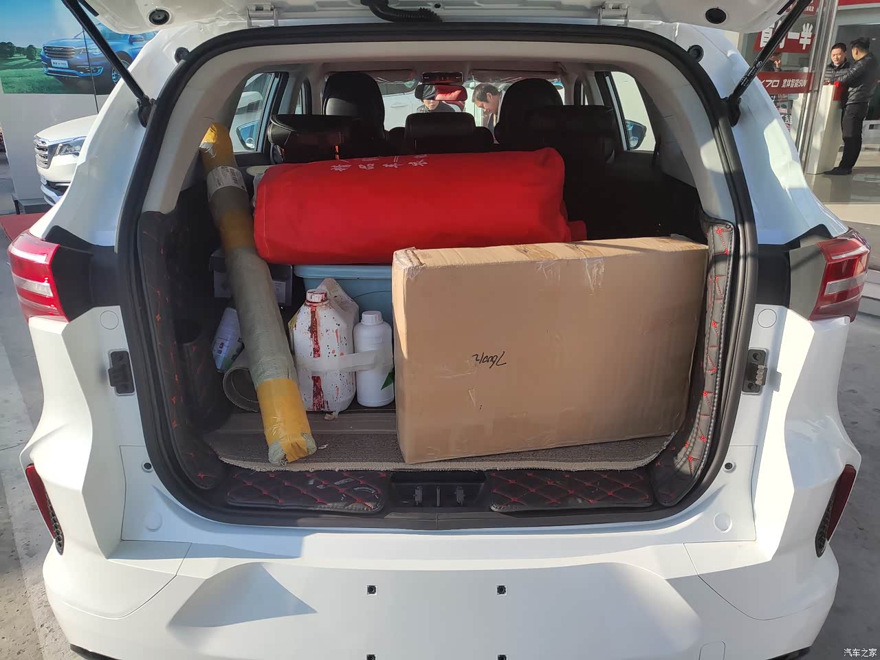 空间是超级满意的,前排和二排坐人的空间宽松得劲,我这一米七八的大块坐进都挺宽敞,后排挤挤坐四个人不成啥大问题,后备箱容量也很巨大,二排放倒装的更是多
