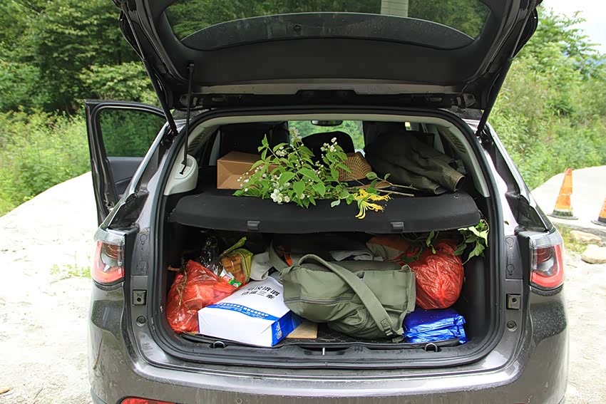 越野,装了三个成年人少量行李,采了山里的金银花!