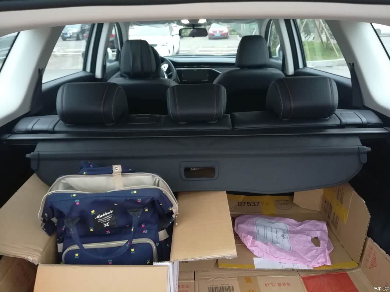 后备箱大,能装下一家出行的日常用品,遮物帘可以拆,后排也可以放倒方便拉大件物品