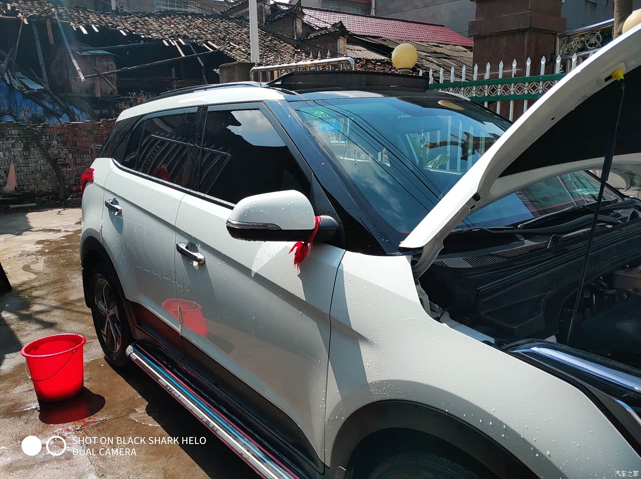 在家快憋疯了,洗洗车吧,是不是跟你们的车子有一丢丢不一样啊,踏板我自己装的,190块,悬浮顶50块