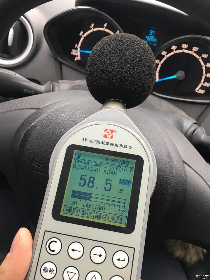 怠速,发动机外噪声56.3分贝;怠速,车内噪声58.5分贝;车速50左右的时候,噪声最大,67.8分贝;一般是80-100之间噪声最小,大概在62分贝;小于80公里每时,大于100公里每时,噪声都会一直增大